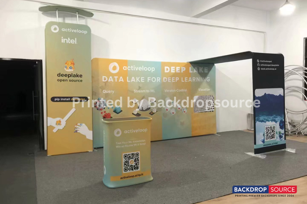 - • Customizable fabric prints to match your branding, messaging, or promotional content