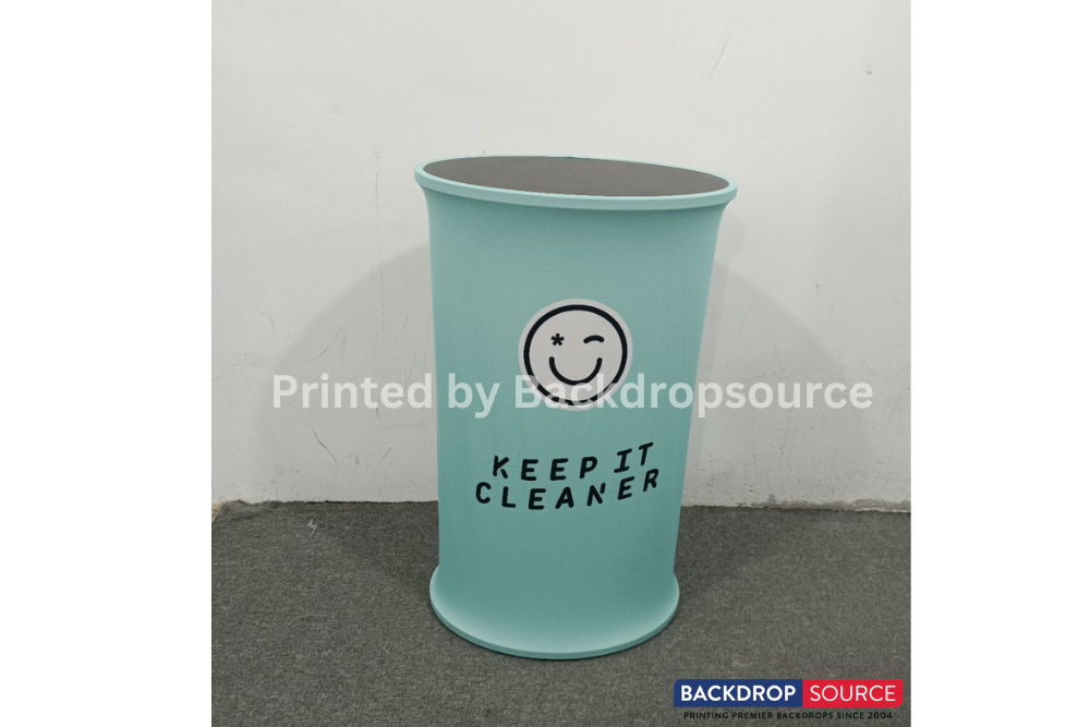 Our Oval fabric counters are ideal for exhibition spaces, showrooms, or point of sale displays, these stylish oval-shaped counters can be fully wrapped in your very own digitally printed design. This oval display provides the perfect foundation to greet and interact with potential customers. Easy assembling without requiring any tools with a strong wipeable work surface. This oval display also has a Clever compact aluminum frame system that can be packed away into a convenient carry bag.
