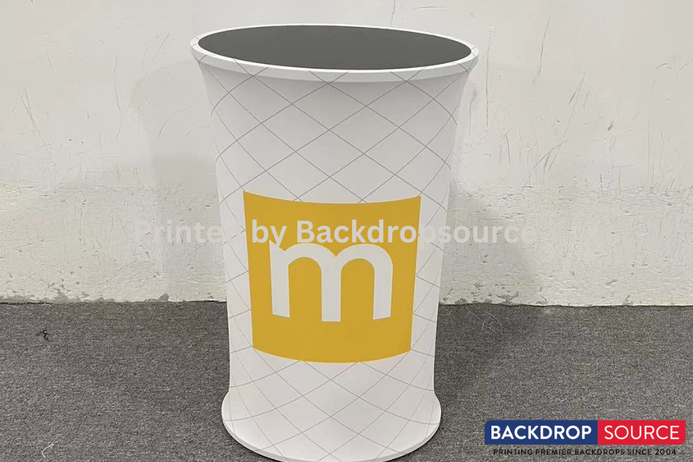 The counter's surface is made from MDF and is joined to the base by three robust aluminum poles, whilst the tension fabric sock simply slides onto the frame to provide a secure fit. The fabric is made using the latest dye-sublimation printing technology and offers a seamless display once applied to the frame.