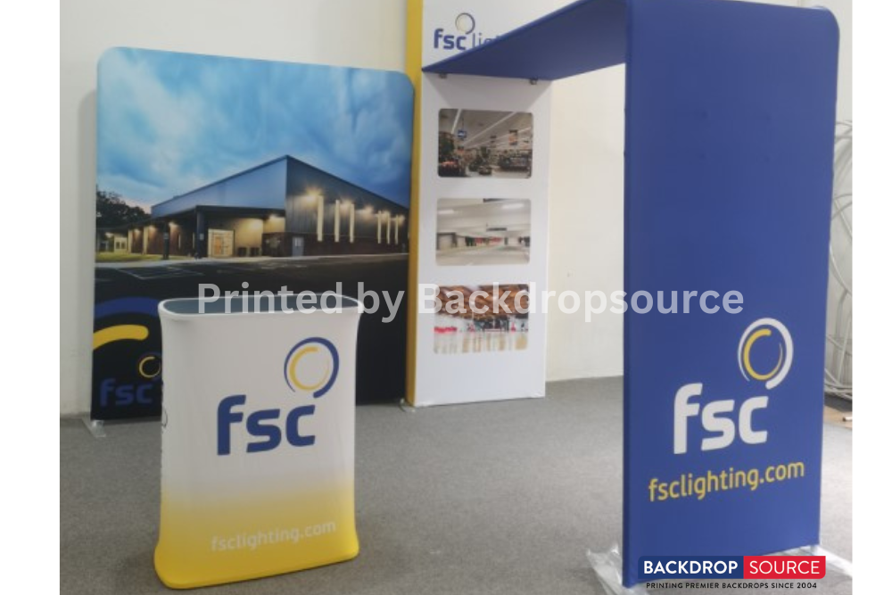 All of Backdrop Source's banners are wrinkle-resistant and machine-washable. Our fabrics stay fade-free over many washes. Easily foldable and portable, your curved fabric banner will resist crumpling or wrinkling over many commutes and road trips.