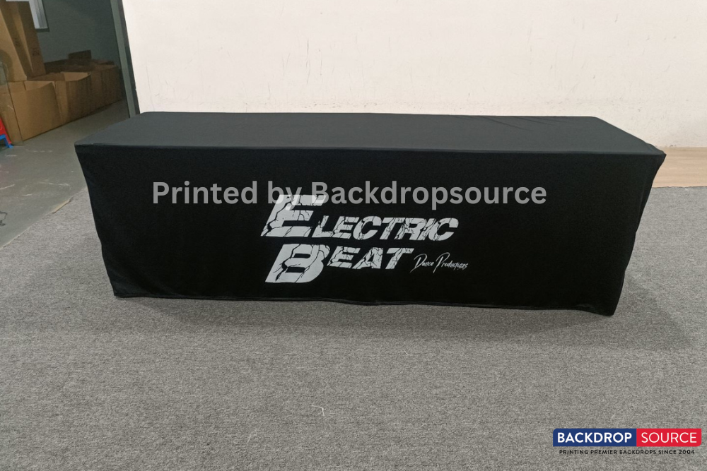 A Fitted Table Cover is a sleek and professional display solution designed to provide a tailored look for tables at trade shows, exhibitions, conferences, and corporate events. Unlike standard tablecloths, fitted table covers are designed to fit snugly over the table, with elasticized edges or a form-fitting structure that ensures the cover stays securely in place without shifting or bunching. This creates a smooth, wrinkle-free surface that enhances the overall appearance of your display.